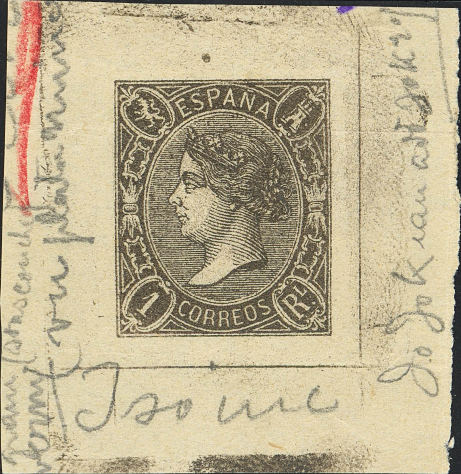 (★) 72P. 1865. 1 real. SPERATI'S DRAFT, with annotations. MAGNIFICENT AND VERY RARE.