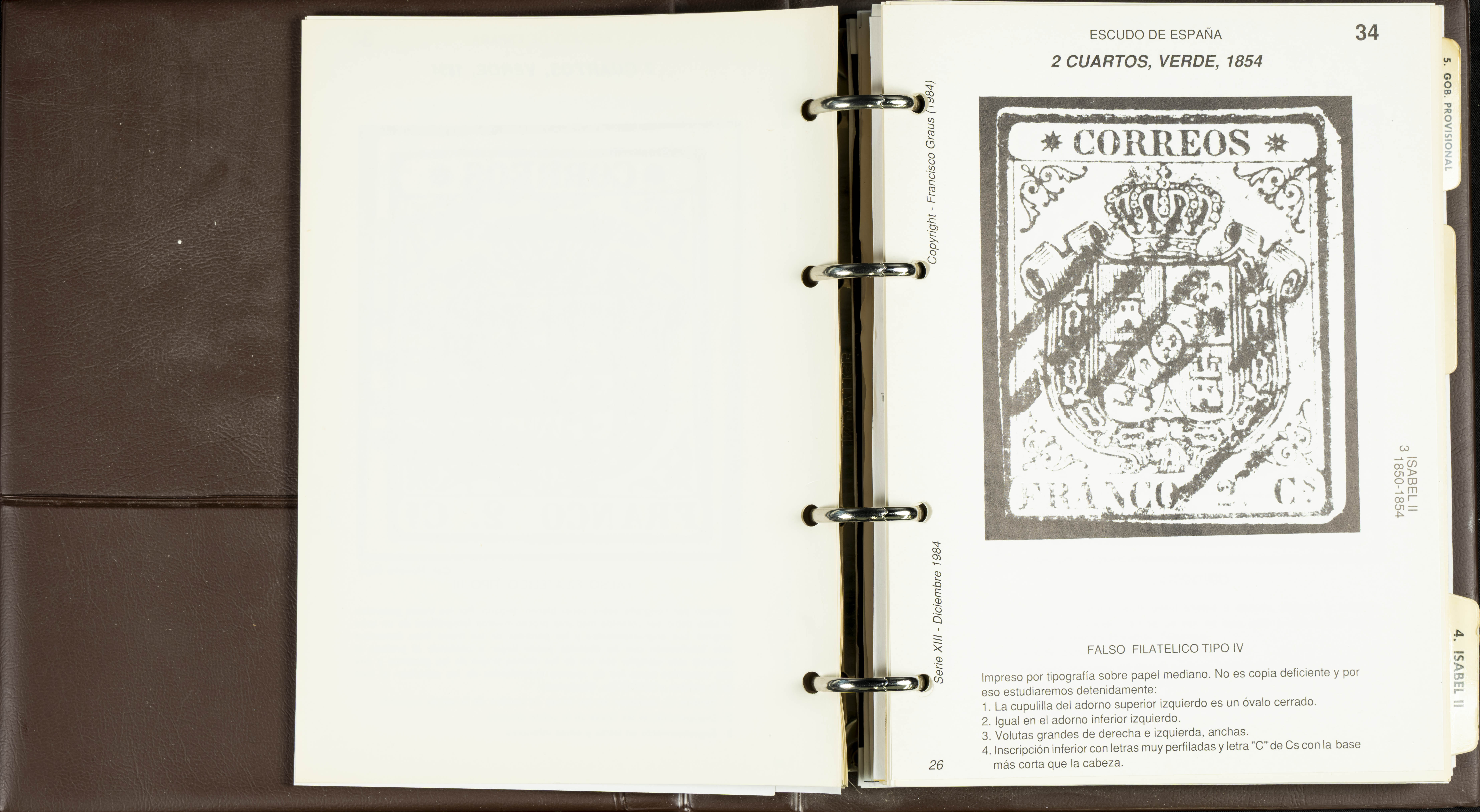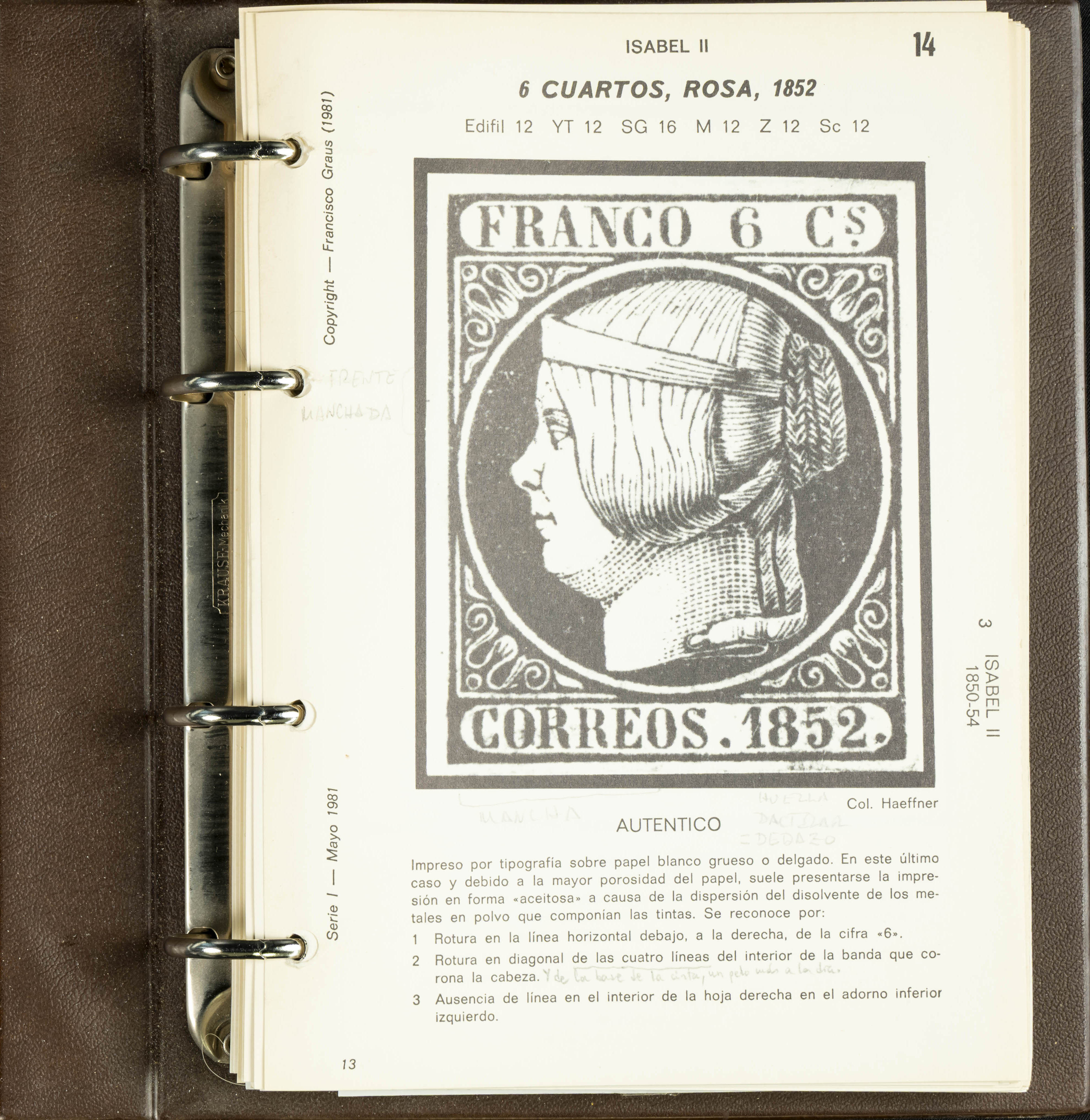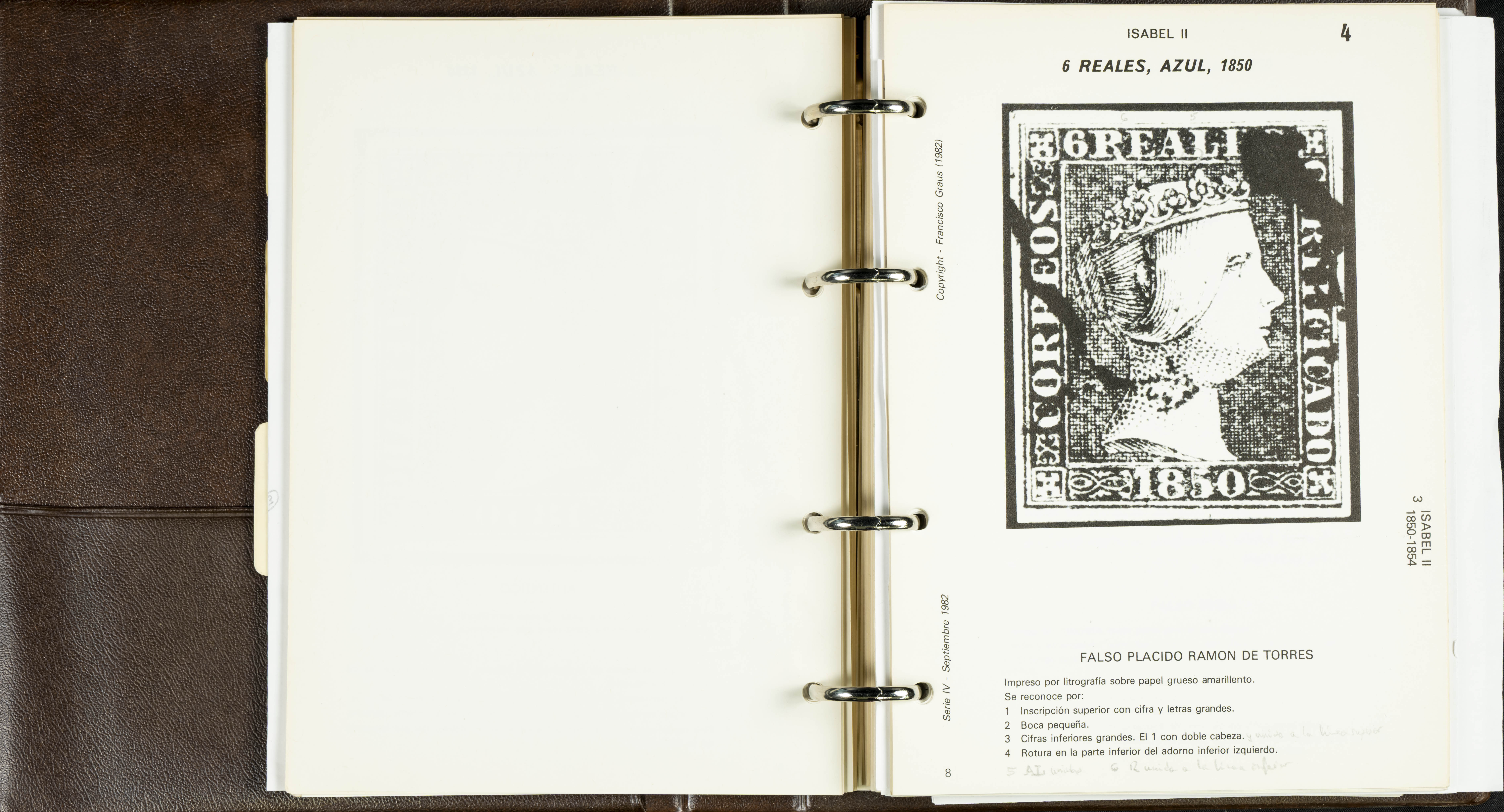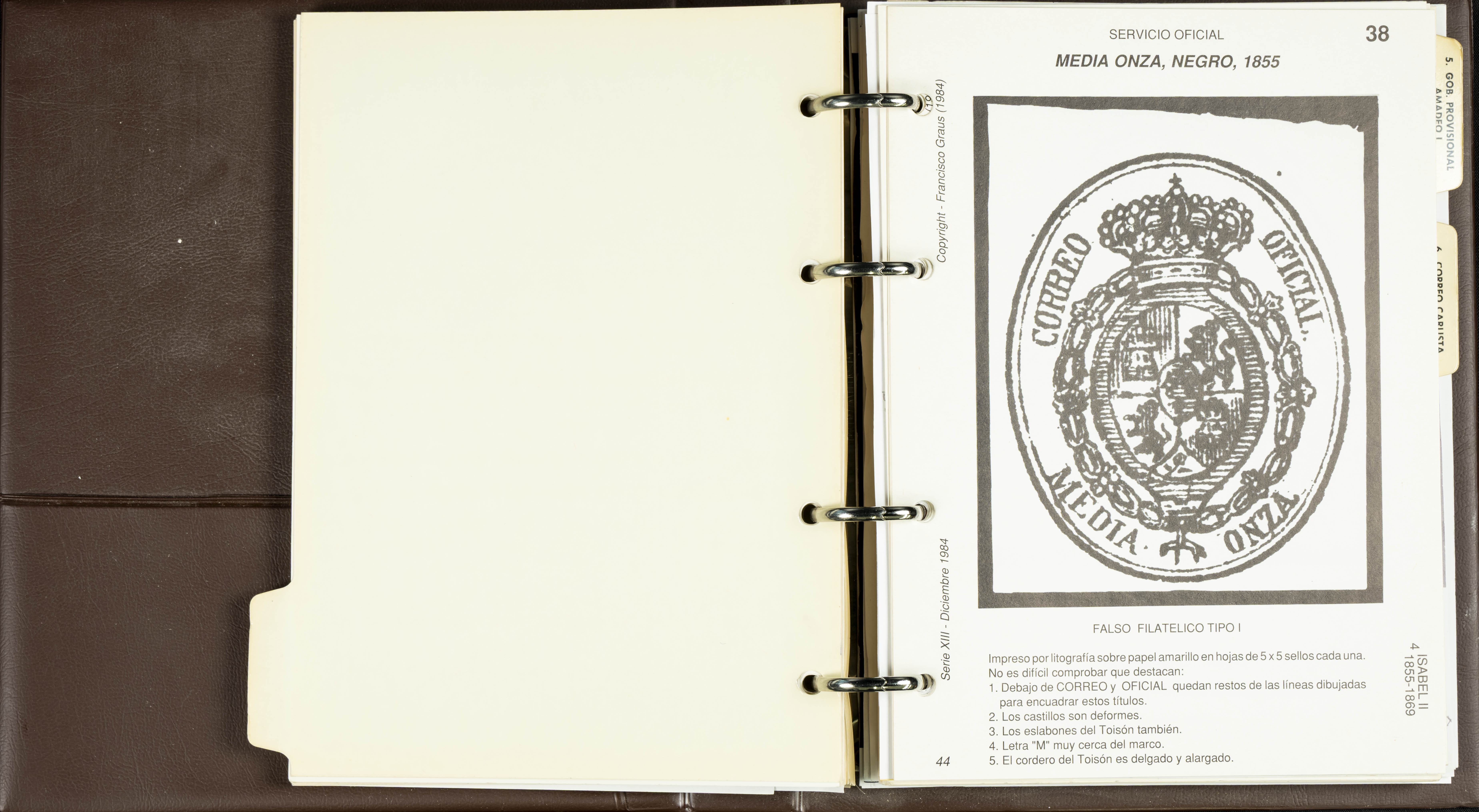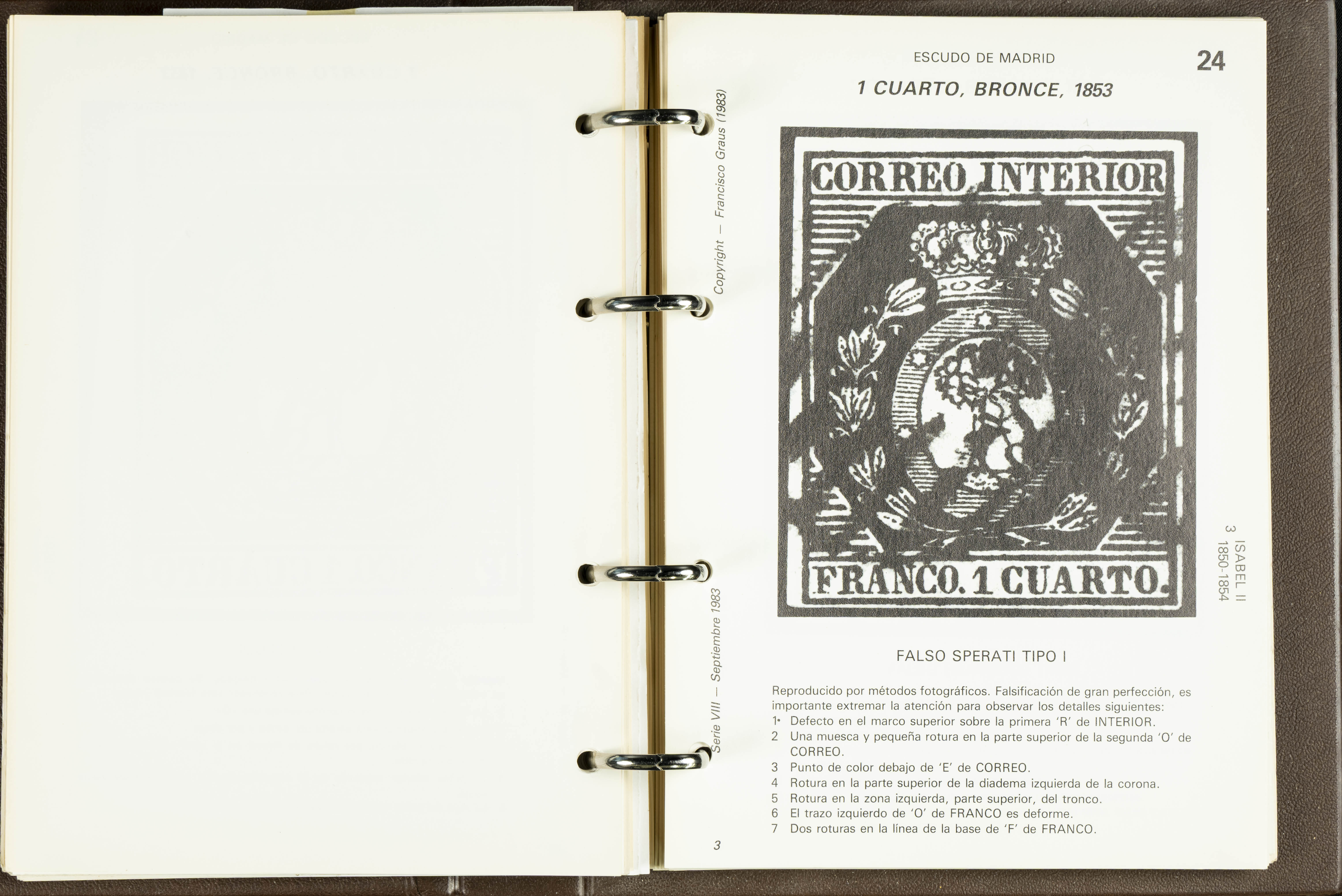 (1986ca). Complete set of the MANUAL OF REFERENCE OF SPANISH FORGERIES, composed of seven volumes with interchangeable cards (some useful annotations by the collector). Francisco Graus. Barcelona, 1986ca. REFERENCE WORK AND ONE OF THE MOST IMPORTANT PUBLISHED BY AN EXPERT IN SPANISH PHILATELY.