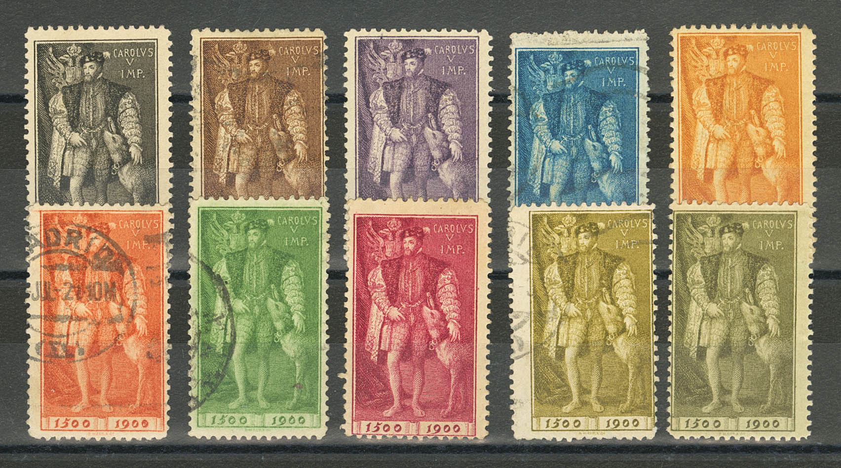 (★)/(1900ca). Set of ten vignettes (some postmarked) 400th ANNIVERSARY OF CHARLES V. MAGNIFICENT AND RARE.