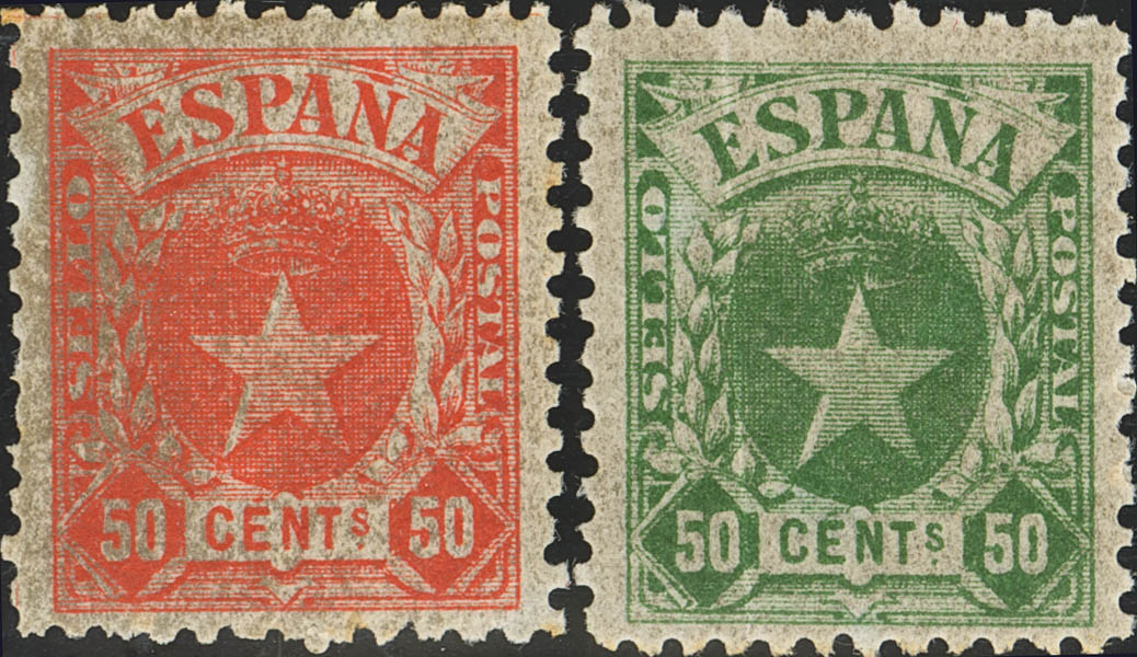 ★(1900ca). 50 cts green and 50 cts red. COLOR TRIALS OF AN UNADOPTED DESIGN. MAGNIFICENT.