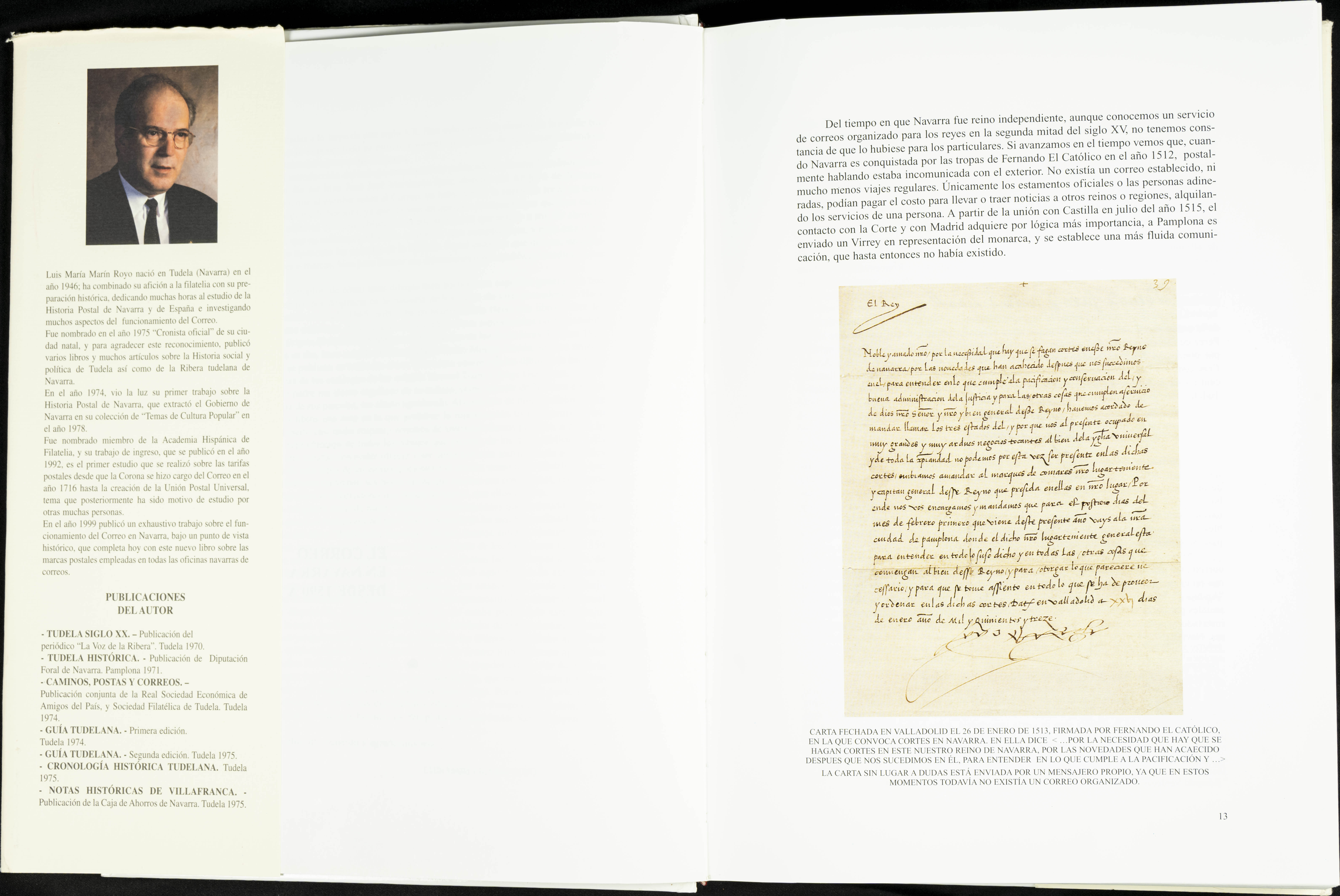 2001. THE POST IN NAVARRA. Luis María Marín Royo. Albertino de Figueiredo Foundation for Philately. Madrid, 2001.
