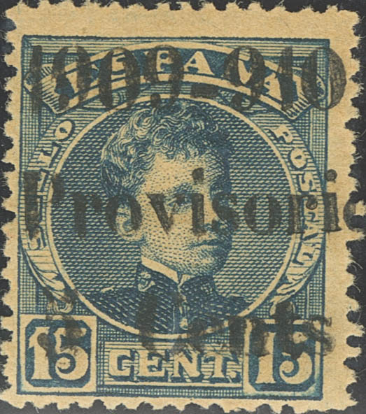 ★ 244. 1901. 15 cts dark blue. Overprint 1909-910 / PROVISIONAL / 5 CENTS. MAGNIFICENT AND VERY RARE.