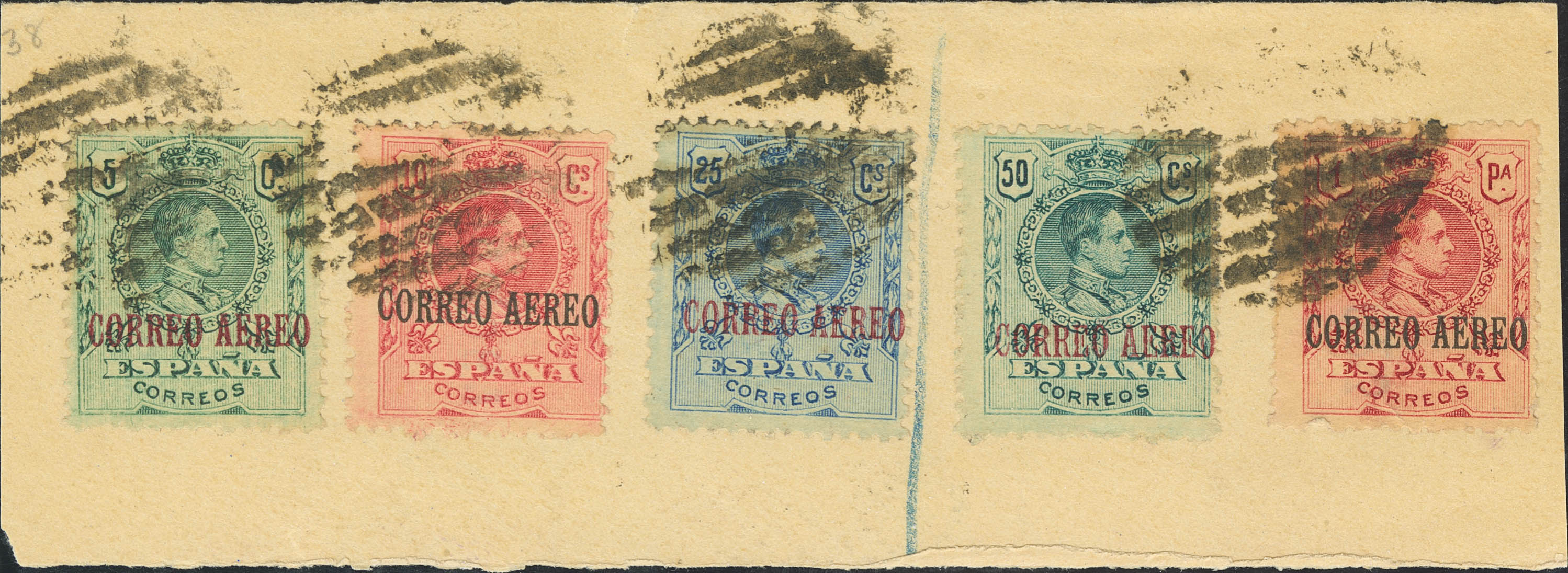 △ 292/96. 1920. Complete series, on fragment. Postmark GRILL. MAGNIFICENT. Edifil 2026: 45 Euros