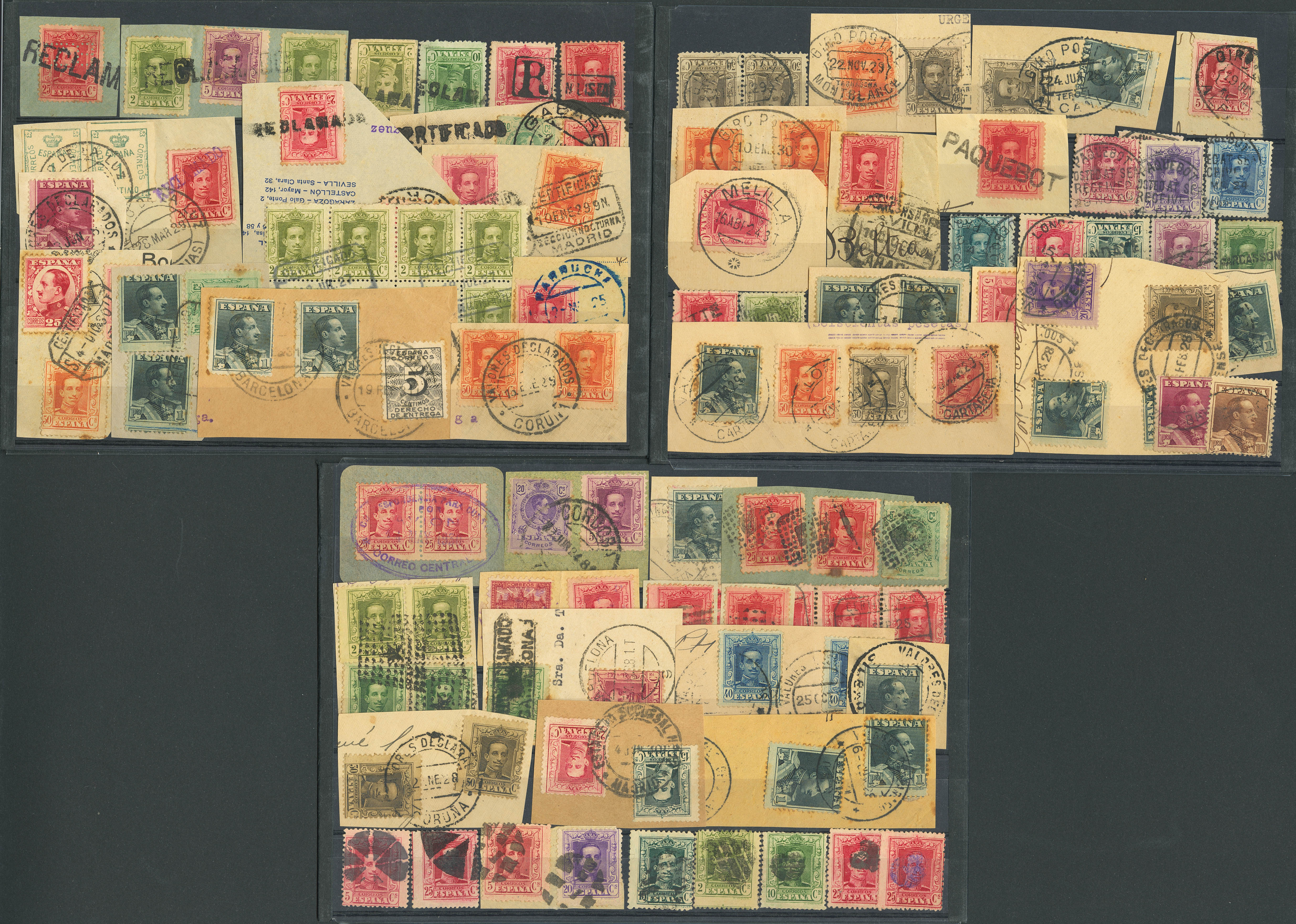 English 1922. Interesting collection of dozens of stamps from the 1922 Vaquer issue with various postmarks, some very rare. TO BE EXAMINED.