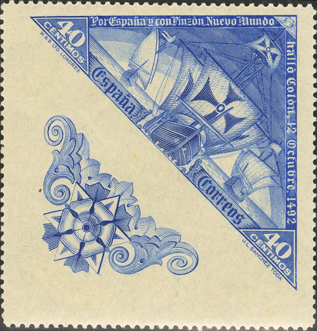 ★ 541basmv. 1930. 40 cts blue. Variety: UNDERTAKEN BETWEEN THE SEAL AND THE DECORATION (Type B). MAGNIFICENT. Edifil 2020: 136 Euros