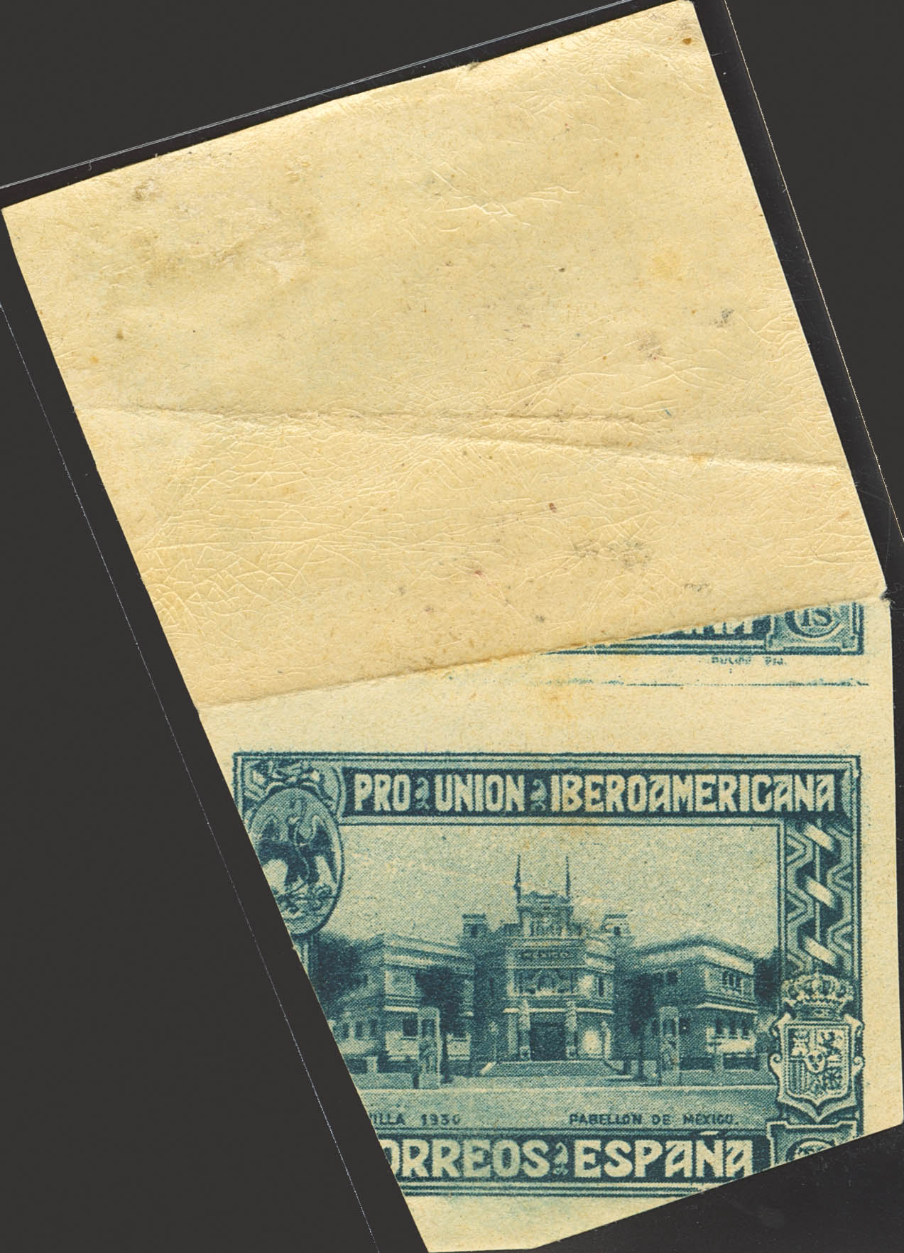 ★ 576s. 1930. 40 cts blue imperforate. Partial printing along the paper fold. Magnificent.