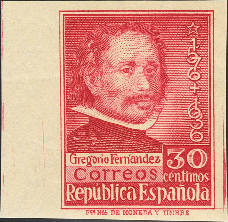 ★★ 726s. 1937. 30 cts carmine, edge of leaf. UNPERFORATED. MAGNIFICENT. Edifil 2025: +44 Euros