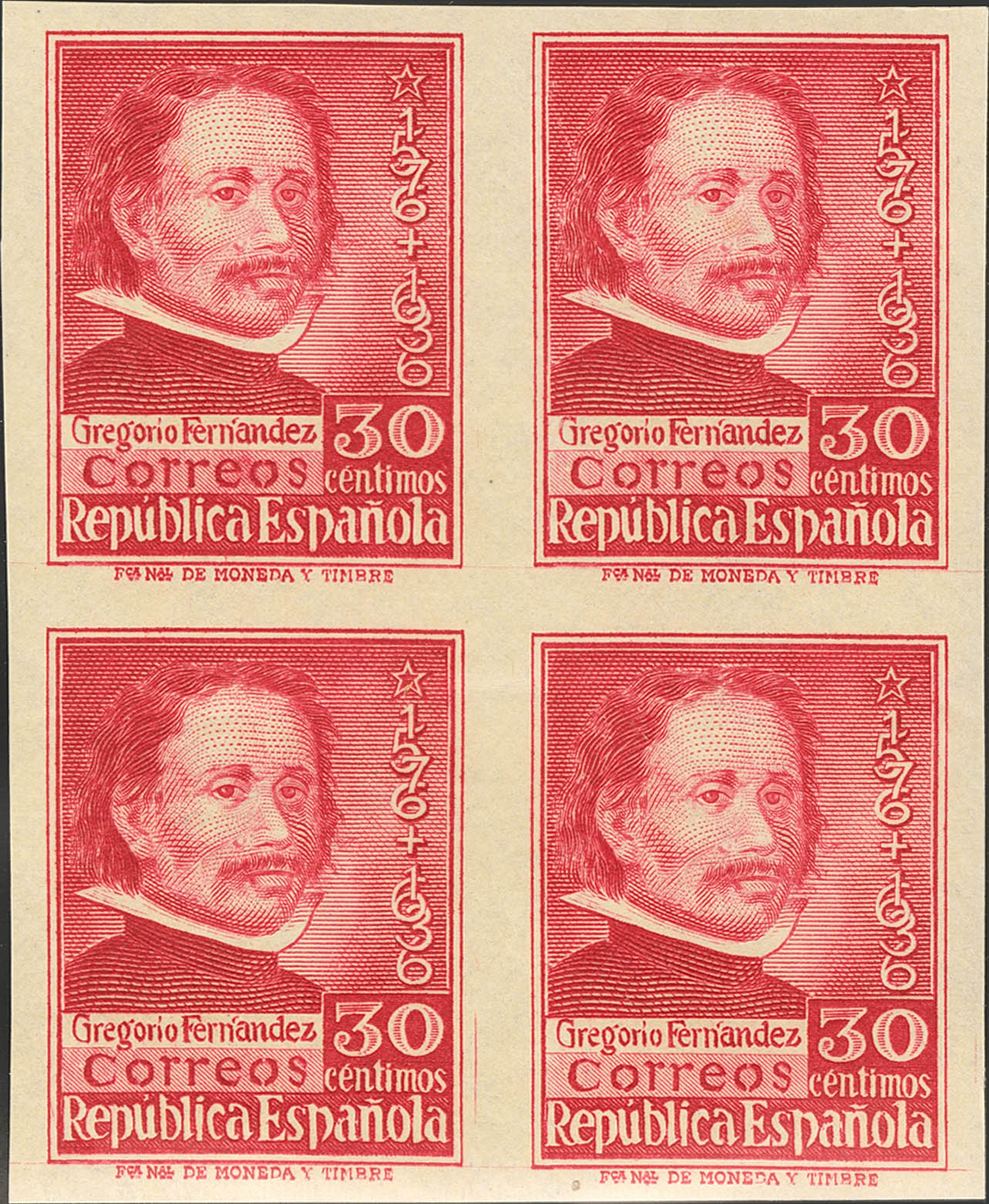 ★★ 726s(4). 1937. 30 cts carmine, block of four. UNPERFECT. MAGNIFICENT. Edifil 2025: +176 Euros