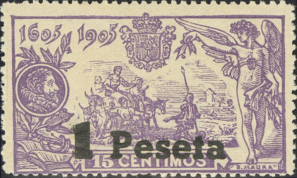 ★★ 762hpa. 1938. 1 point out of 15 cents, violet. (No. A034570). Overcharge 1 peseta, the rest of the overcharge omitted. Magnificent and rare. Edifil 2020: 235 Euros