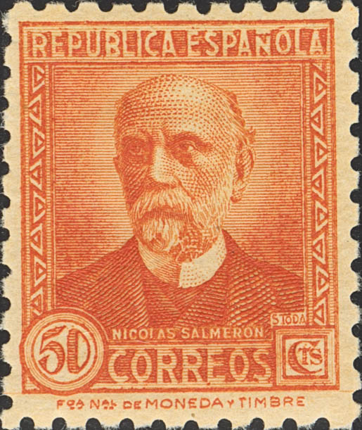 ★★ NE34. 1938. 50 cts red-orange (excellent centering). UNISSUED. MAGNIFICENT AND RARE. Cert. CEM. Edifil 2026: +450 Euros