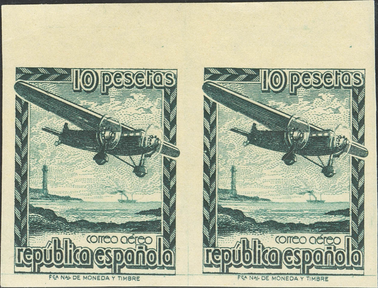★★ NE38s(2). 1939. 10 pts green, pair. UNISSUED and PERFORATED. MAGNIFICENT. Edifil 2026: 200 Euros