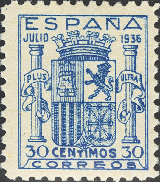 ★★ 801. 1936. 30 cts blue. Very well centered. MAGNIFICENT. Cert. CEM. Edifil 2026: 1,200 Euros