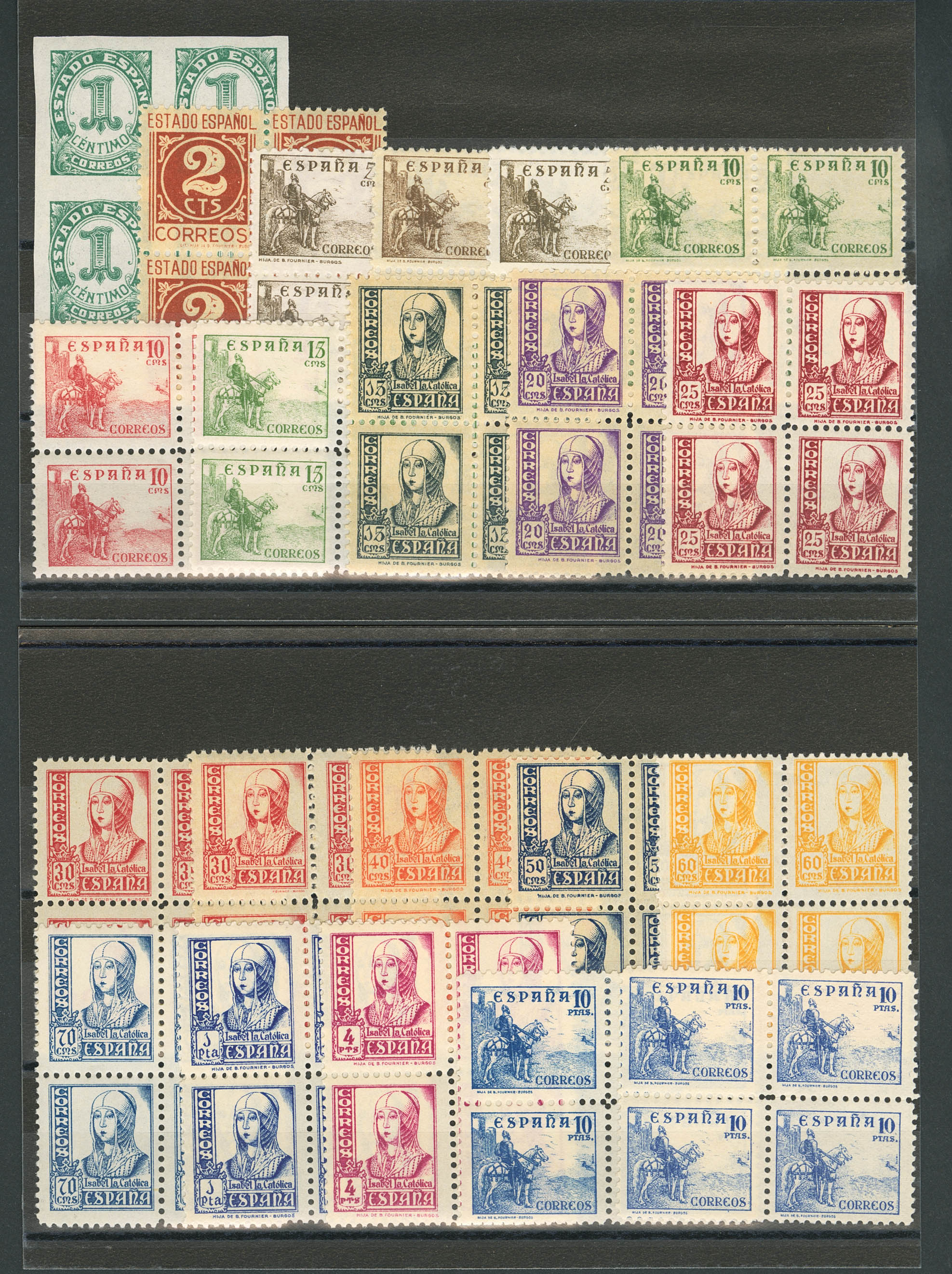 ★★ 814/31(4). 1937. Complete series, twenty-one values, block of four. MAGNIFICENT AND VERY RARE IN A BLOCK OF FOUR. Edifil 2026: 2,000 Euros