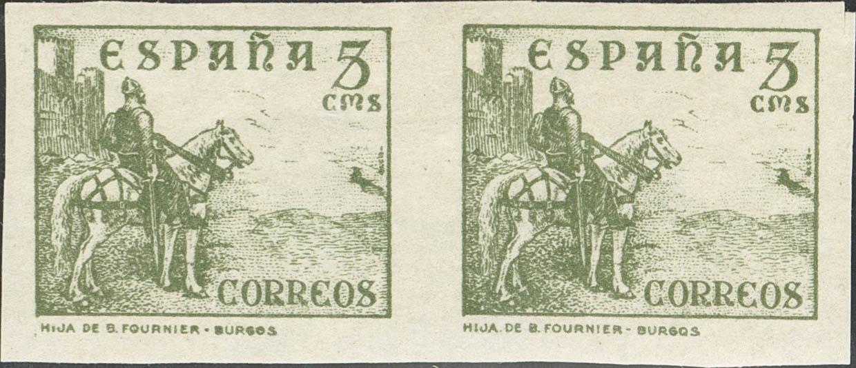 ★★ 816ecs(2). 1937. 5 cts green, pair. COLOR CHANGE and UNPERFECT. MAGNIFICENT. Edifil 2021: +136 Euros