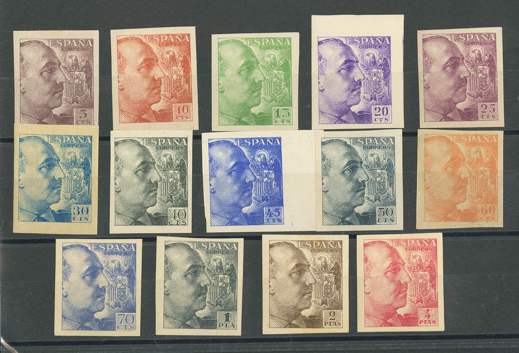 ★★/★ 919/33s. 1940. Complete series, fifteen values (missing the 1 pt black Edifil No.: 931s, the 15 ct green has a horizontal fold, and the 2 pt Shadows of Time has minor damage). IMPERTED. EXCELLENT. Edifil 2015: 1,646 Euros