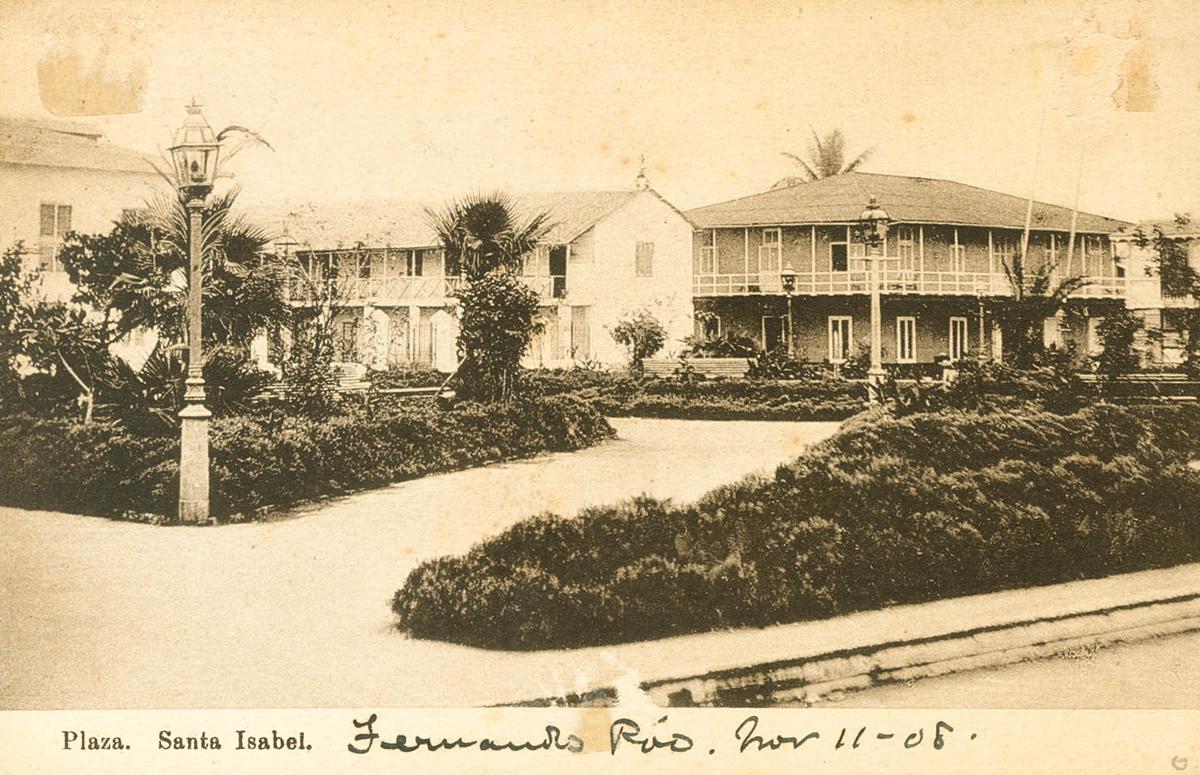 155(3). 1908. 4 cts negro, tres sellos. Tarjeta Postal de SANTA ISABEL a WIMBORNE (GRAN BRETAÑA). MAGNIFICA.
