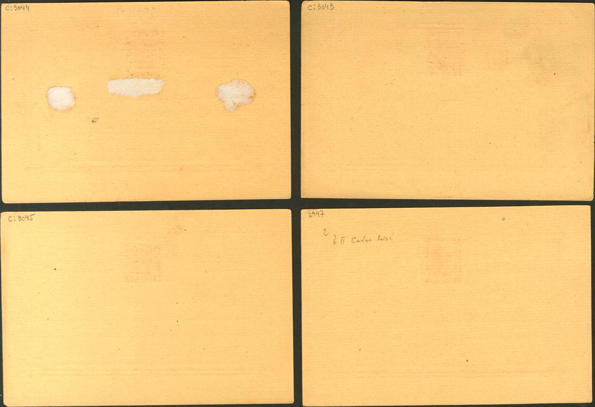 (★) 2, 2ci, 2cg, 2cj. 1879. 3 cts sobre 50 mils castaño rojo, cuatro Tarjetas Entero Postales, tres con diferentes variedades de composición. MAGNIFICAS. (Láiz 2006: 265 Euros)