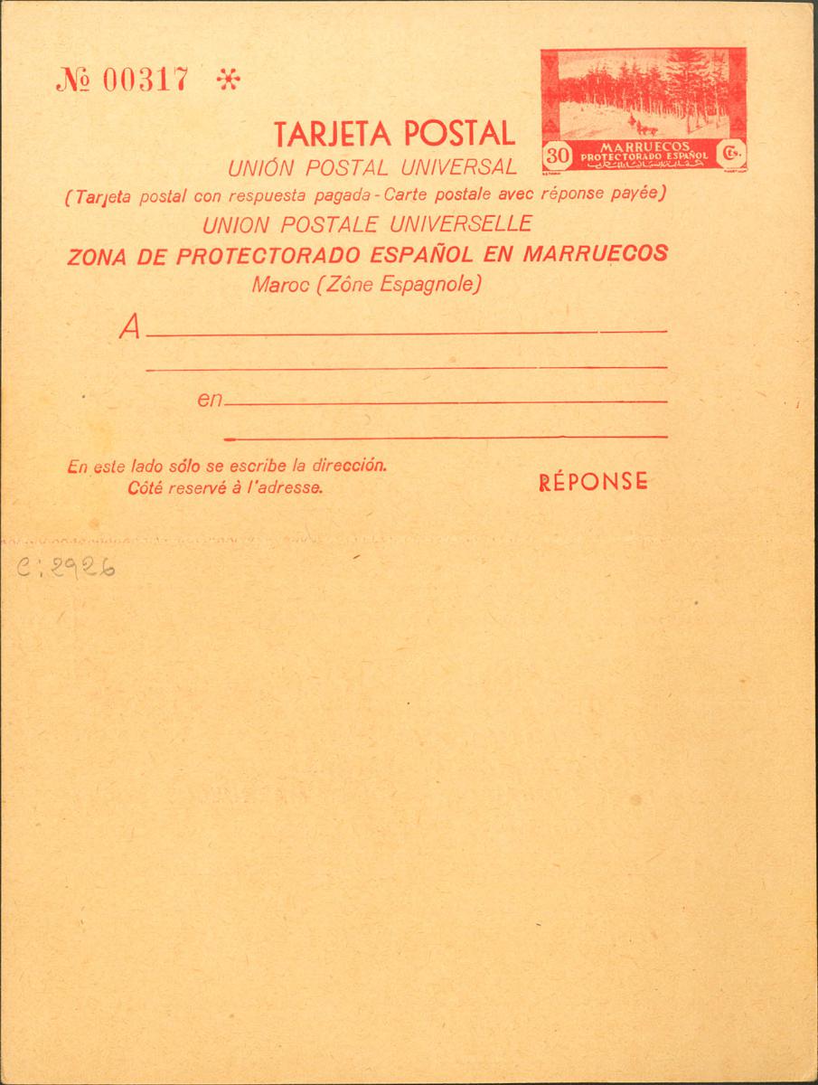 (★) EP25. 1935. 30 cts + 30 cts rojo sobre Tarjeta Entero Postal, de ida y vuelta. MAGNIFICA. Edifil 2022: 200 Euros
