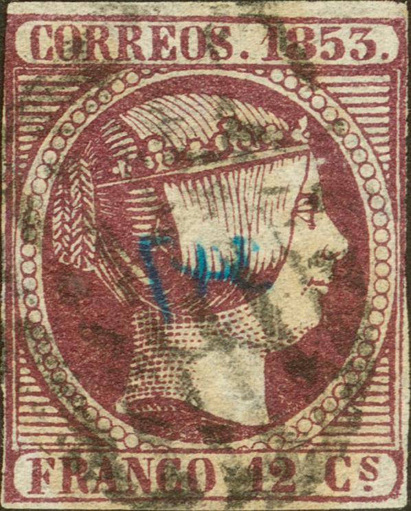 (★) 18F. 1853. 12 cuartos violeta. FALSO SPERATI, al dorso marca de la B.P.A. BONITO.