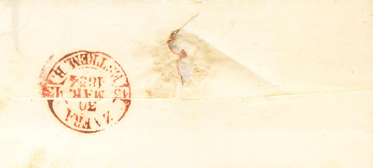 24. 1854. 6 cuartos carmín, borde de hoja. FUENTE DE CANTOS (BADAJOZ) a ZAFRA. En el frente baeza FUENTE D.CANTOS / ESTREM.B., en rojo. MAGNIFICA.