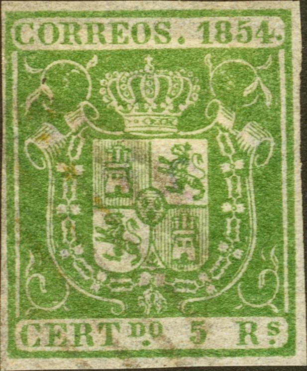 26F. 1854. 5 reales verde. FALSO SPERATI, al dorso marca de la B.P.A. MAGNIFICO.