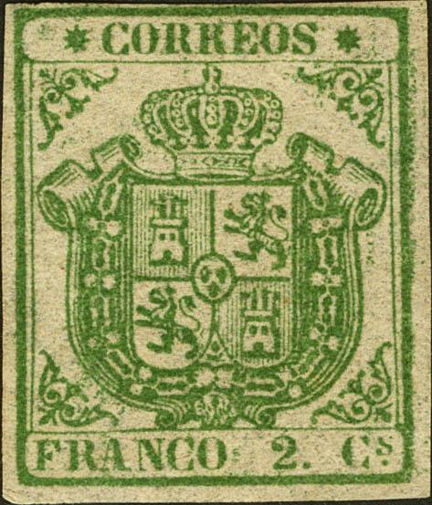 ★ 32. 1854. 2 cuartos verde. MAGNIFICO. Cert. CEM.