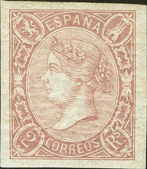 ★ 73. 1865. 2 reales lila. Color intenso y márgenes excepcionales. MAGNIFICO. Cert. GRAUS.