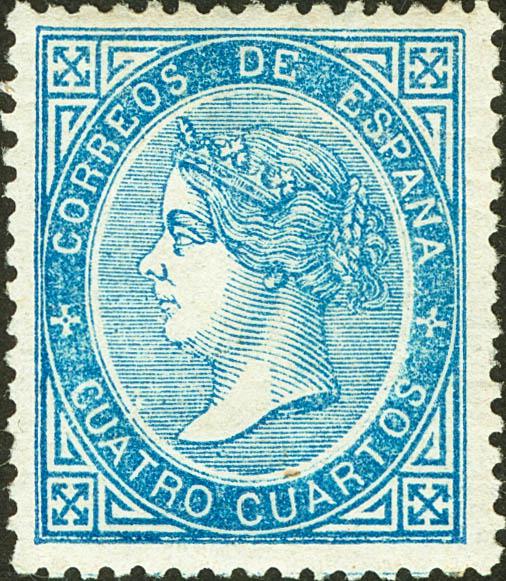 ★ 88. 1867. 4 cuartos azul. Excepcional centraje. PIEZA DE LUJO.