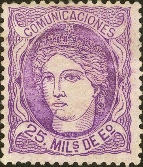 (★) 106. 1870. 25 mils violeta. MAGNIFICO Y ESPECTACULAR TONALIDAD DE COLOR.