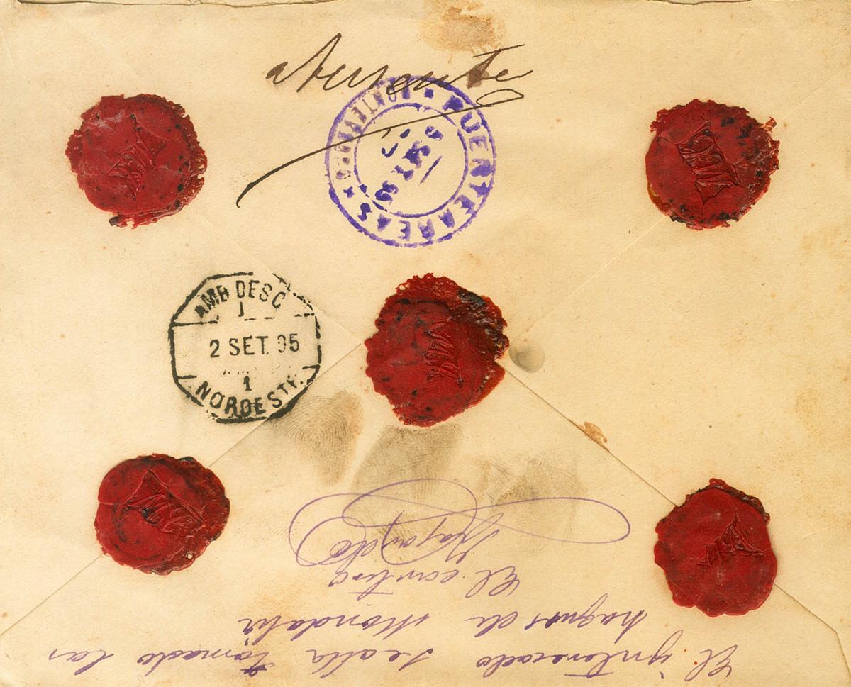 219, 221. 1895. 15 cts castaño lila y 25 cts azul. Correo Interior de SEVILLA, y reexpedida al BALNEARIO DE MONDARIZ (PONTEVEDRA). Al dorso anotación manuscrita "El interesado se alla tomando las haguas de Mondariz" y fechador PUENTEAREAS / PONTEVEDRA, en violeta. MAGNIFICA E INUSUAL REEXPEDICION.