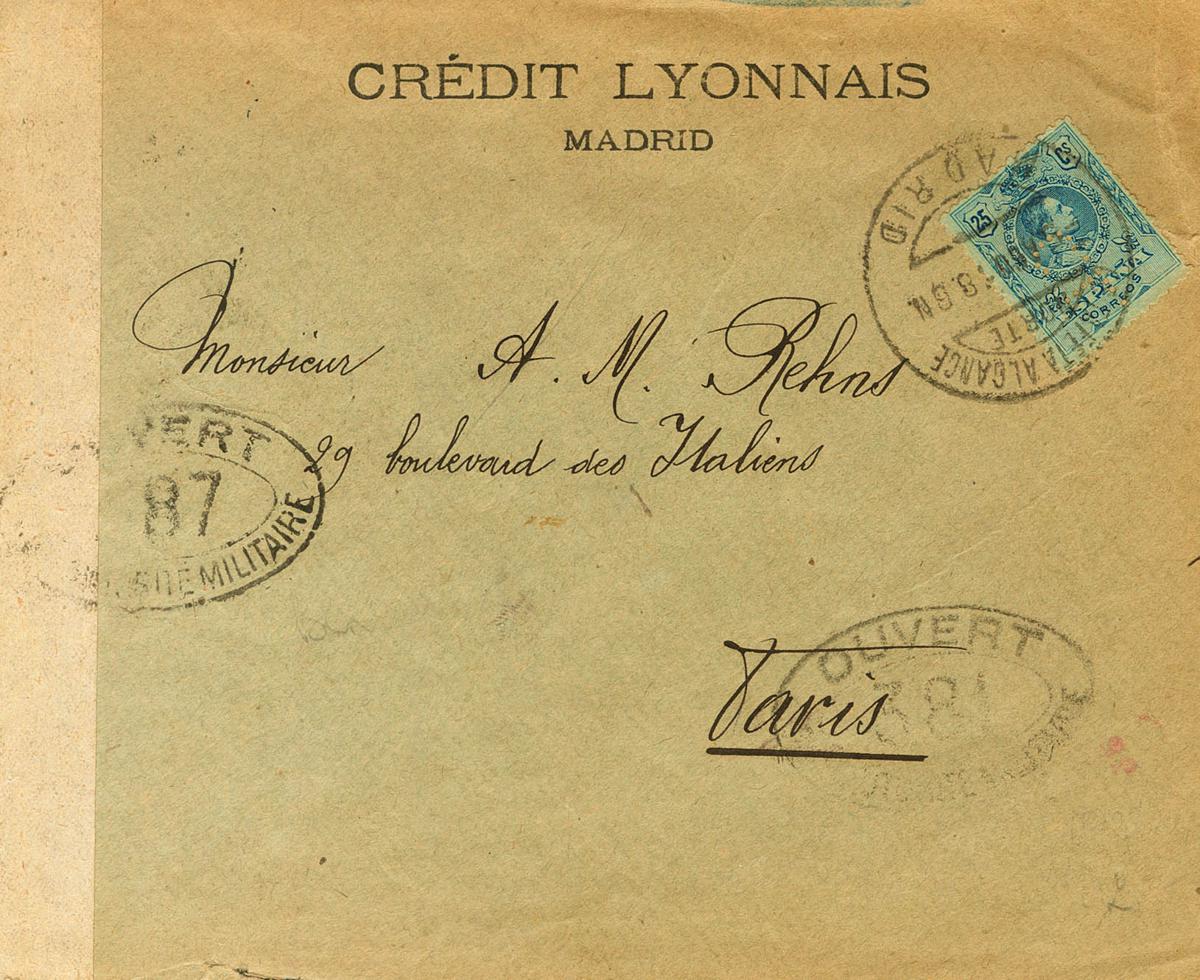 274. 1918. 25 cts azul. MADRID a PARIS (FRANCIA). Matasello ESTAFETA ALCANCE / NORTE / MADRID. MAGNIFICA.