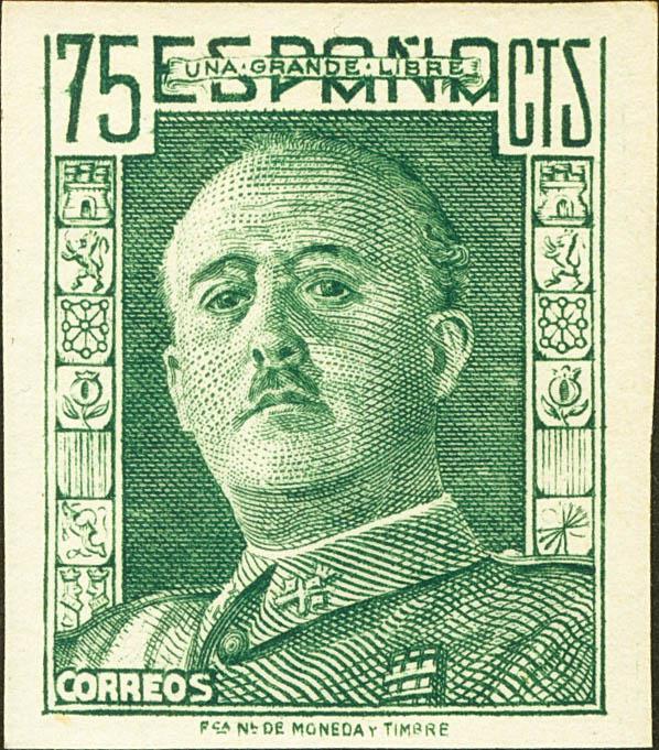 ★★ 999ccs. 1946. 75 cts verde amarillo. CAMBIO DE COLOR y SIN DENTAR. MAGNIFICO.