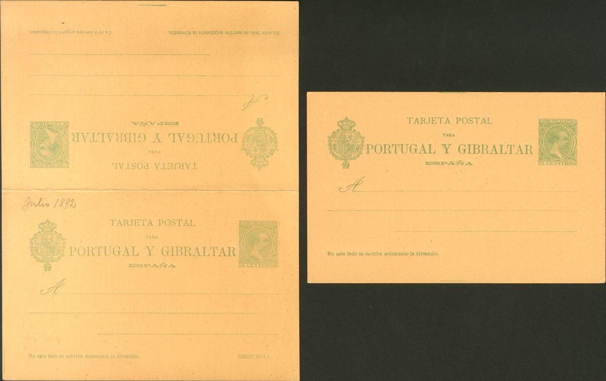 (★) EP34/35. 1893. 5 cts verde sobre Tarjeta Entero Postal y 5 cts+5 cts verde sobre Tarjeta Entero Postal, de ida y vuelta. MAGNIFICAS. Edifil 2022: 80 Euros
