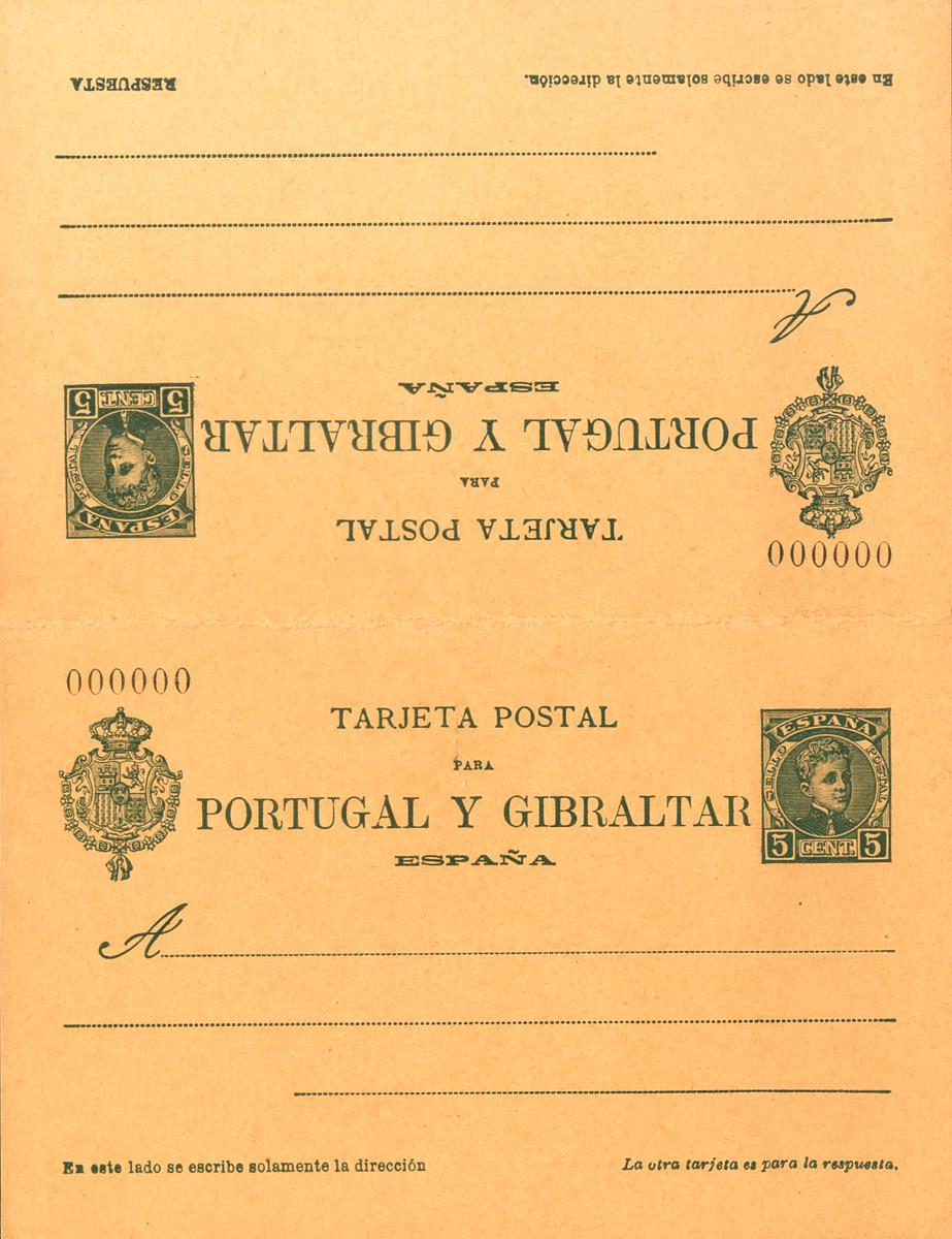 (★) EP44N. 1903. 5 cts + 5 cts verde azulado sobre Tarjeta Entero Postal, de ida y vuelta. Nº000000. MAGNIFICA. Edifil 2017: 105 Euros