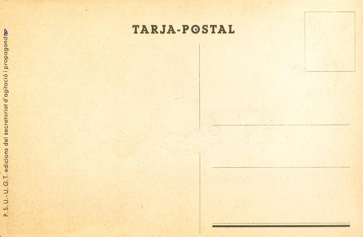 (★)(1938ca). Tarjeta Postal del Secretariado de Agitación y Propaganda P.S.U. TREBALLEU PER AL FRONT. BONITA Y RARA. (Allepuz 335)