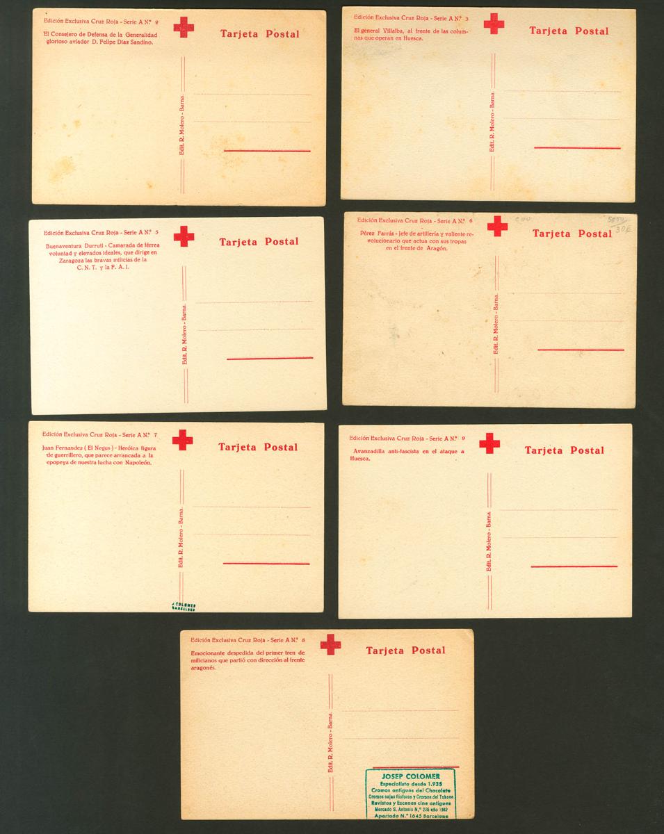 (★)(1936ca). Conjunto de siete tarjetas postales de la CRUZ ROJA (personajes y escenas) de la serie A. BONITAS Y RARAS. (Allepuz 1198/99, 1201/05)