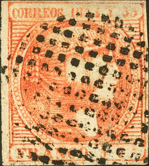 1. 1854. 5 orange cuartos (slight clarity). MAGNIFICENT.