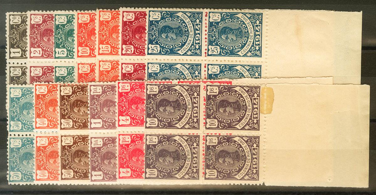 ★★ 78/90N(4). 1914. Complete series, block of four (a stamp of 10 pts with fixer). No. A000,000. MAGNIFICENT. Building 2018: Edifil Euros