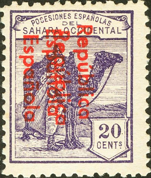 ★ 39 Ahh. 1932. 20 cts violet. DOUBLE OVERLOAD. MAGNIFICENT. Edifil 2018: 210 Euros