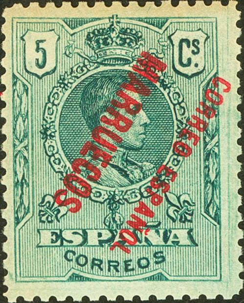 English ★ 2hi. 1909. 5 cts green. INVERTED OVERLOAD variety. MAGNIFICENT. Edifil 2018: 125 Euros
