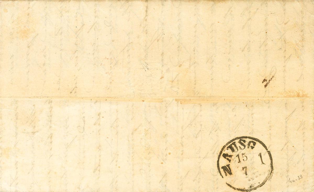 133(4). 1873. 10 green cts, four stamps. PEÑALCAZAR (SORIA) to AIX LA CAHPELLE (AQUISGRAN-GERMANY), sent from the Barcelona mine, which was part of the mining complex established in this town. On the front DEZA / SORIA dater, in blue in transit. MAGNIFICENT AND RARE COMBINATION OF POSTAGE TO GERMANY, WITH EXCESS OF 10 CTS ACCORDING TO RATE IN FORCE SINCE OCTOBER 1872.