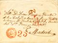 1850. ARROYO DEL PUERCO (BADAJOZ) to MADRID. Baeza ARROYO DEL P. / ESTREM.B., in red and portages "2" and "25". MAGNIFICENT.