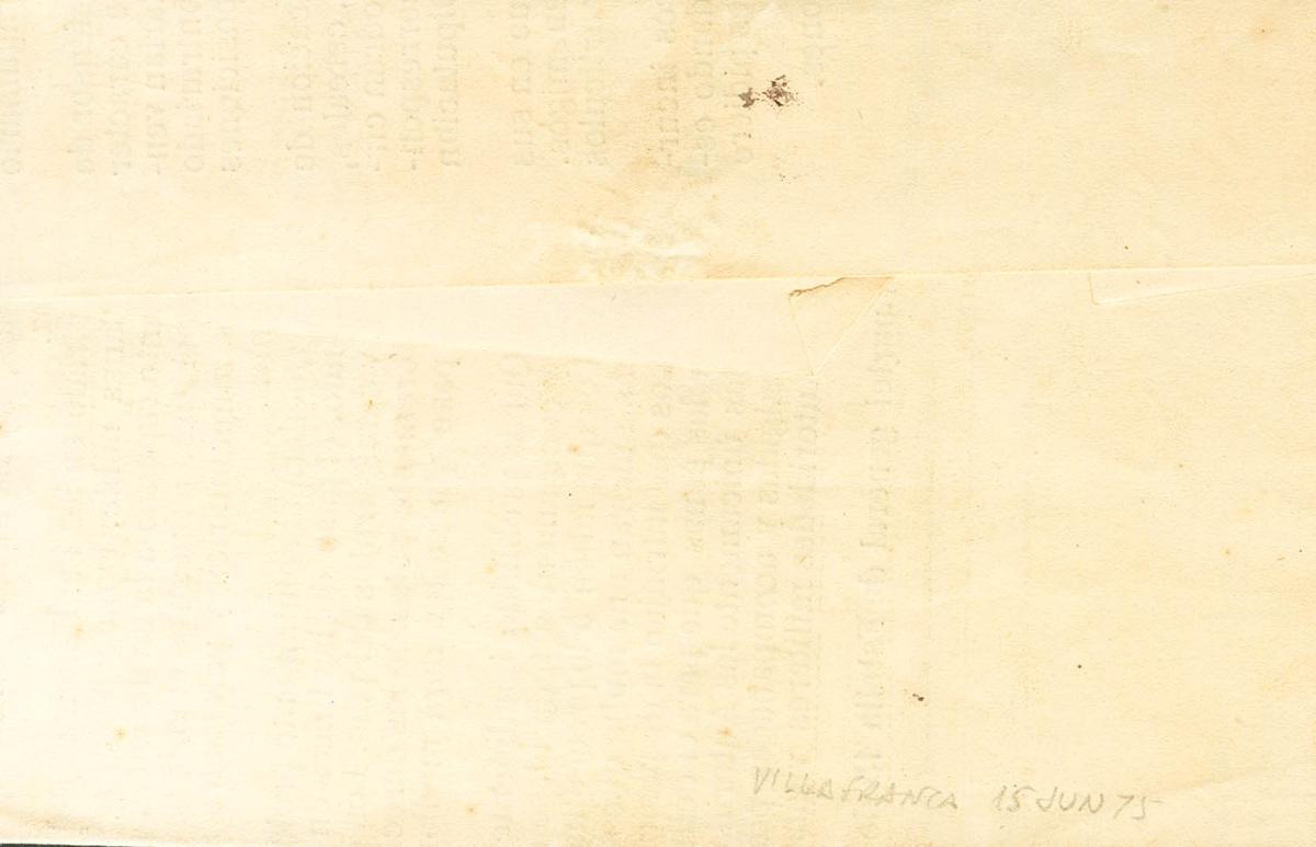 English 1875. (June 15). Printed Circular from ESTELLA to EIBAR. Mark MNYML PROVINCIA DE GUIPUZCOA (blurred stamping) and VILLAFRANCA / CORREOS / GUIPUZCOA, both in blue. BEAUTIFUL AND RARE.