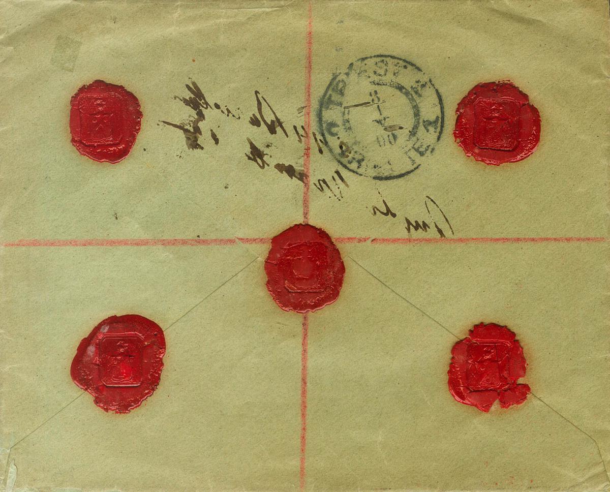 216(2), 218, 222, 224. 1900. 5 cts green, two stamps, 10 cts vermilion, 30 cts olive chestnut and 50 cts carmine. Certificate from BARCELONA to TRIESTE (AUSTRIA). On the back arrival. MAGNIFICENT AND SPECTACULAR POSTAGE AND RARE DESTINATION.
