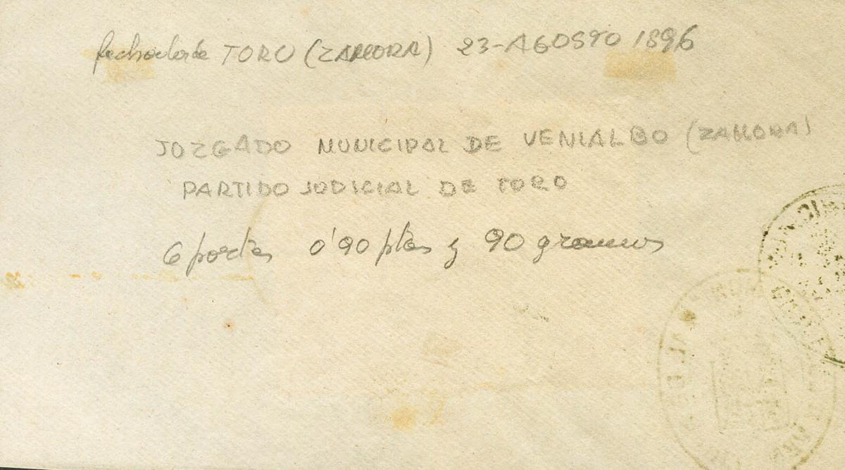 English 219(6). 1889. 15 chestnut cts, six stamps. Judicial Escrow from VENIALBO (ZAMORA) to TORO. MAGNIFICENT AND RARE.