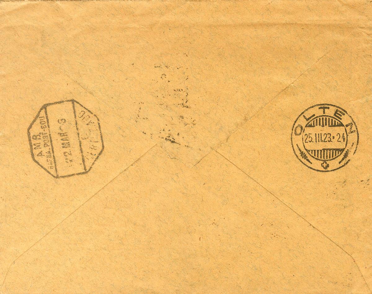 English 276(2). 1923. 40 rose cts, two stamps. Certificate from FIGUERAS to OLTEN (SWITZERLAND). On the back arrival. MAGNIFICENT.