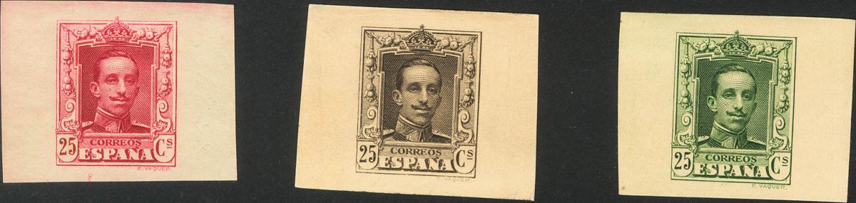 (★) 317A(8). 1922. Set of eight PUNCH PROOFS of 25 cts, on cardboard and in different colors. MAGNIFICENT AND RARE SET. (Galvez 2036/38, 2041/43)