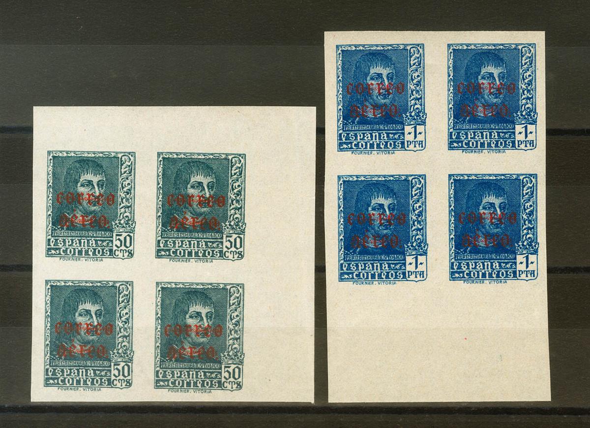 ★★ 845/46s(4). 1938. Complete series, block of four. NO TEETH. MAGNIFICENT AND RARE. Building 2022: Edifil Euros