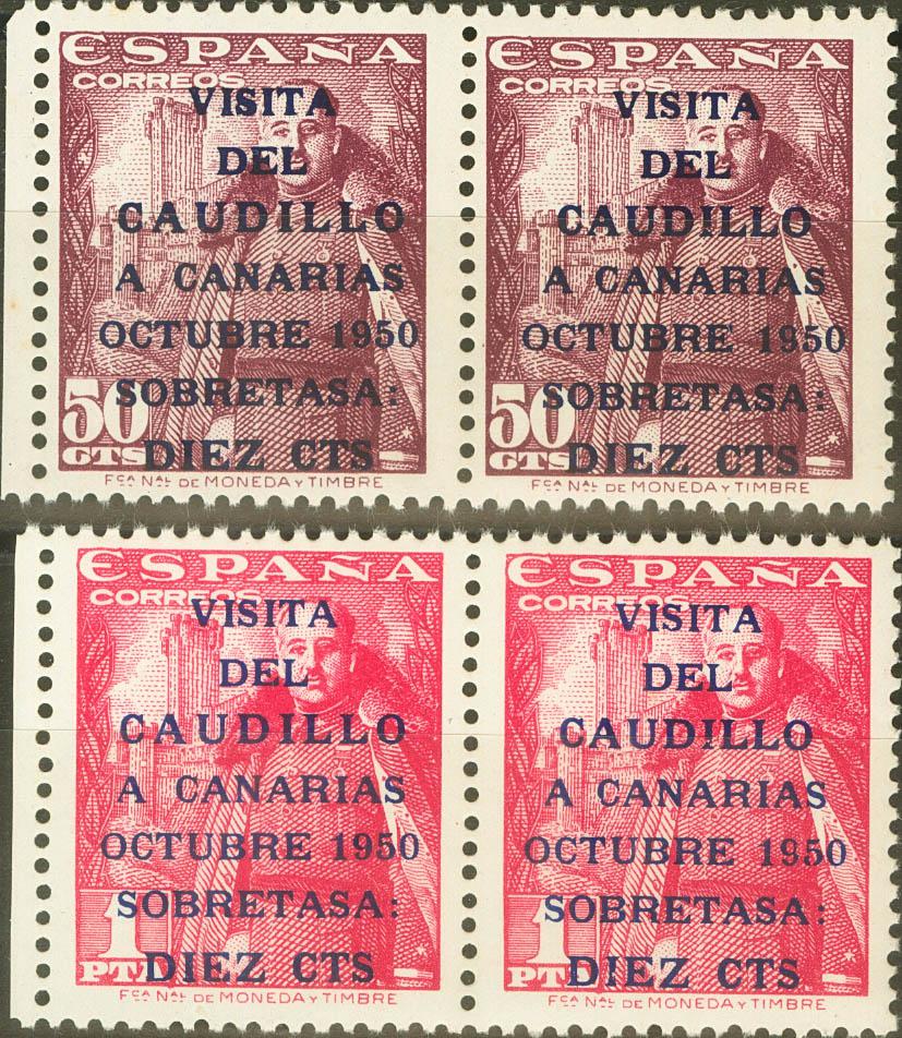 English ★★ 1088/89, 1088/89he. 1951. Complete series, pair. A SHORTER stamp variety "CAUDILLO". MAGNIFICENT. Building 2021: Edifil Euros