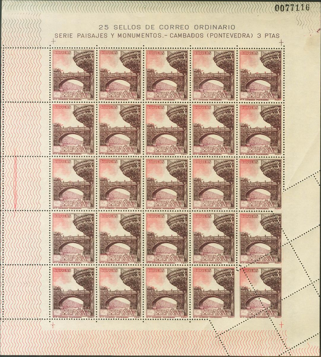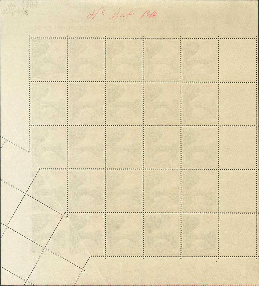English ★★ 1651(25). 1965. 3 chestnut and pink pts, sheet of twenty-five stamps. DIAGONAL TOOTHED VARIETY BY FOLDING THE PAPER. MAGNIFICENT AND SPECTACULAR.